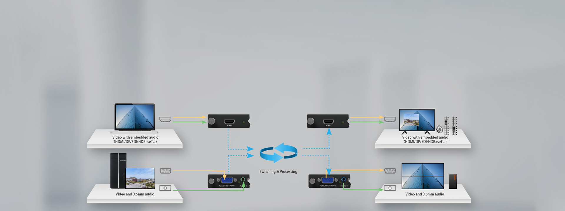 HPro підтримує вбудоване та де-вбудоване керування аудіо. Користувач може перемикати вхід і вихід аудіо, збільшувати/зменшувати гучність і керувати попередніми налаштуваннями аудіо.