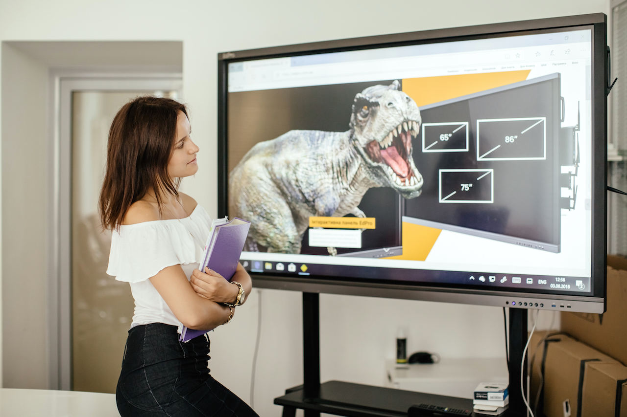 Звичайно, такий продукт, маючи повноту функціоналу інтерактивного мультимедійного комплексу і позбавлений експлуатаційних витрат, коштує дещо дорожче. Як правило, вибір на користь інтерактивних дисплеїв роблять тренінгові центри компаній та вищі навчальні заклади.