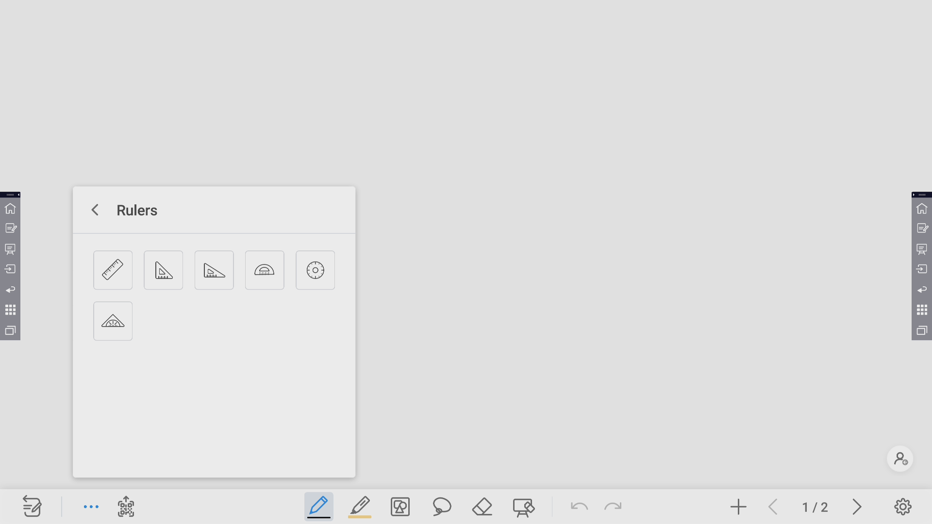 Наступними йдуть геометричні лінійки. Просто оберіть потрібну лінійку та використайте на дошці. Вимірюйте зображення або малюйте “під лінієчку” одразу на екрані. Раніше відсутність цієї функції була одним з проблем неможливості використання інтерактивних дисплеїв на уроках геометрії. Тепер з цим покінчено.