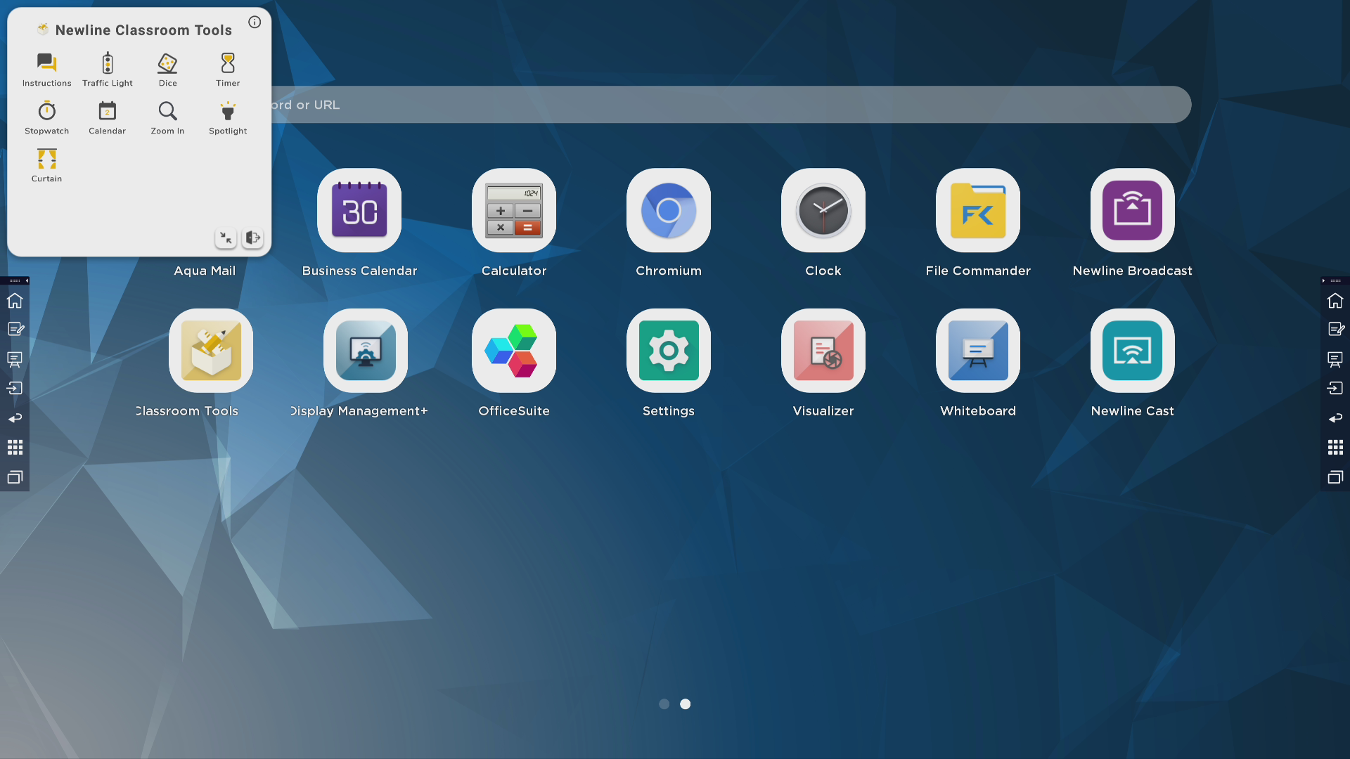 Але це не останній елемент розроблений для використання дисплеїв в школах. Реалізовано новий інструмент Newline Classroom. Це набір віджетів, які можуть стати в пригоді під час уроку: календар, таймер, секундомір, зум частини екрану з затемненням іншої.
