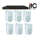 Комплект акустики 4 настінних динаміків ITC для озвучування середніх та великих приміщень. Потужність 4х30Вт забезпечить якісний звук . Підсилювач з  MP3 (USB / SD) / TUNER and bluetooth, вбудований MIC1 & Line 1 вхід функція запису, 1EMC вхід, 2AUX, 4 Phonejack MIC входу (1U, Rack mount), 100V & 4-16Ω.